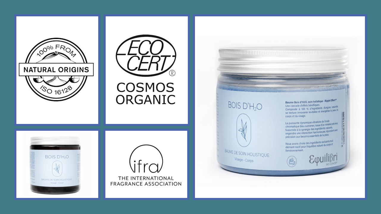Cette innovation de texture unique du baume Bois d'H2O, est composé à 100% d'ingrédients d'origine naturelle**. ISO 16128, norme D'ETAT qui vise à harmoniser les terminologies "naturel" et "bio" utilisées dans les cosmétiques au niveau mondial.